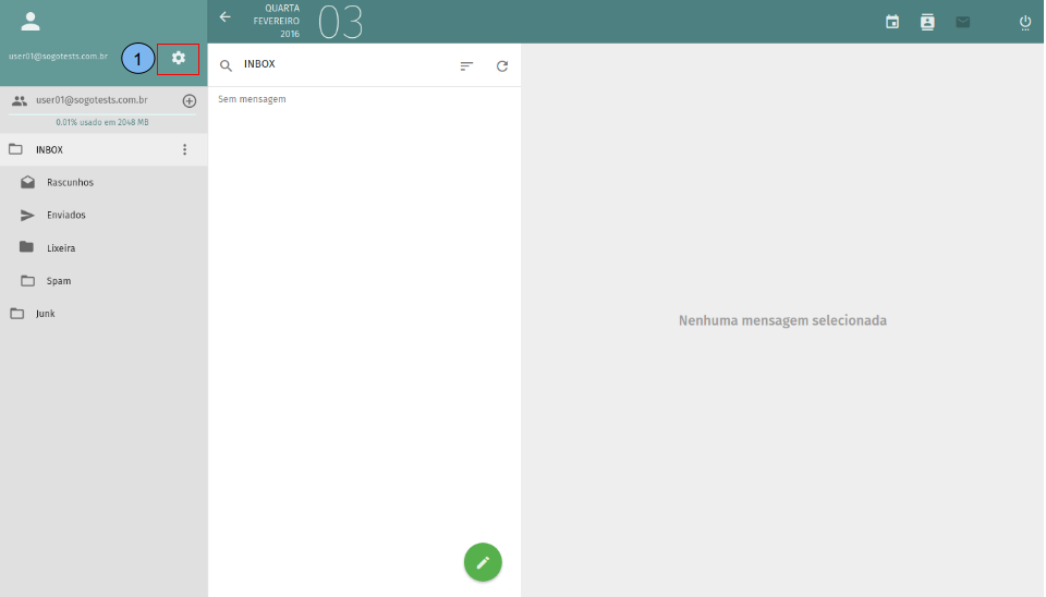 Por padrão quando um e-mail é enviado para um destinatário que não está cadastrado no catálogo de endereços, o sistema não salva essas contas no catálogo de endereço. Para adicionar destinatários desconhecidos no catálogo, siga o procedimento abaixo: Acesse “Preferencias”(1).