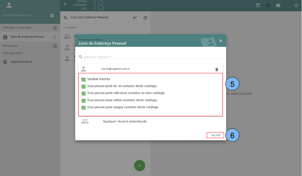 Configurar permissões de acesso de um usuário especifico aos catálogos de endereços.