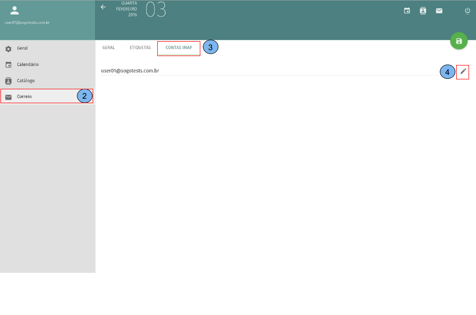 Em preferências vá em Correio(2) -> CONTAS IMAP(3) -> Editar(4).