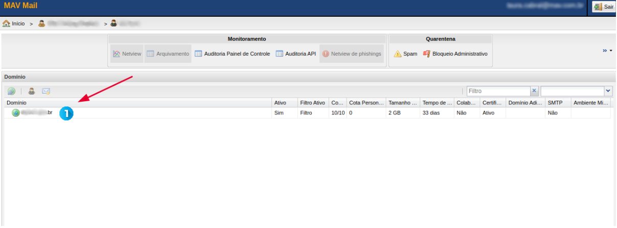 Acesse o Painel de controle(1) e selecione o seu domínio.