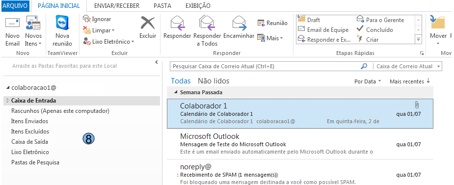 A nova conta será exibida na tela do Outlook (16) sendo possível utilizá-la para realizar as tarefas.