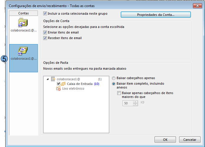 Selecione a opção “Conta de Email” (4) e “Avançar” (5)