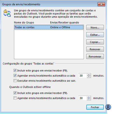 Desmarque a opção “Incluir a conta selecionada neste grupo” (6) e clique em “OK” (7)