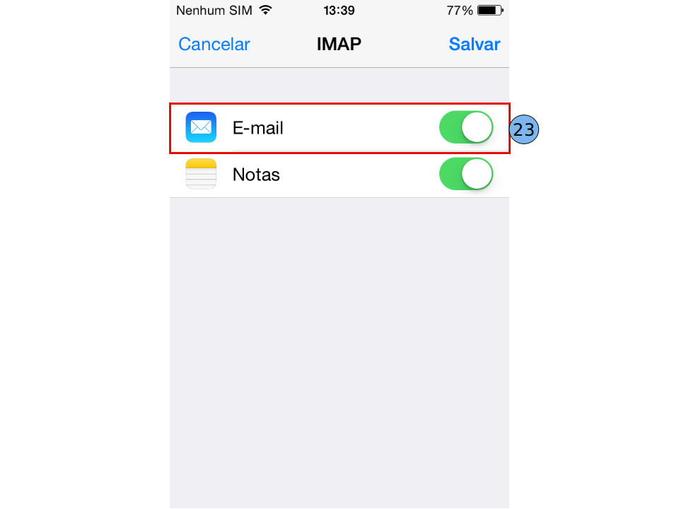 O iPhone pode levar alguns instantes para terminar as configurações. Caso apareça esta mensagem sobre SSL, escolha "Não" (22).