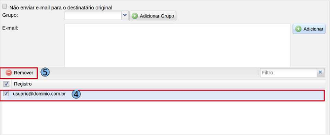 Selecione a conta que deseje remover (4) e clique no botão “Remover” (5).